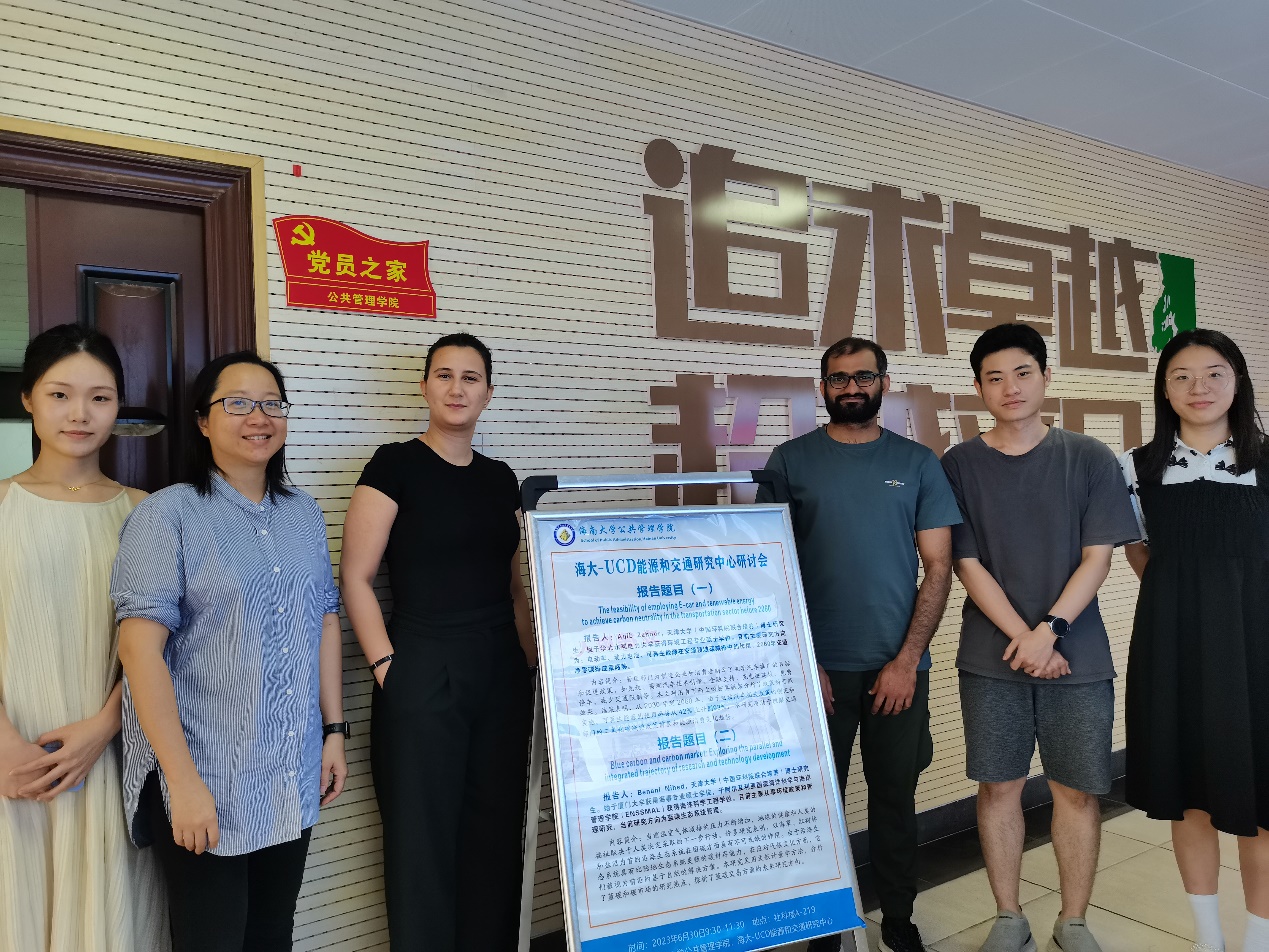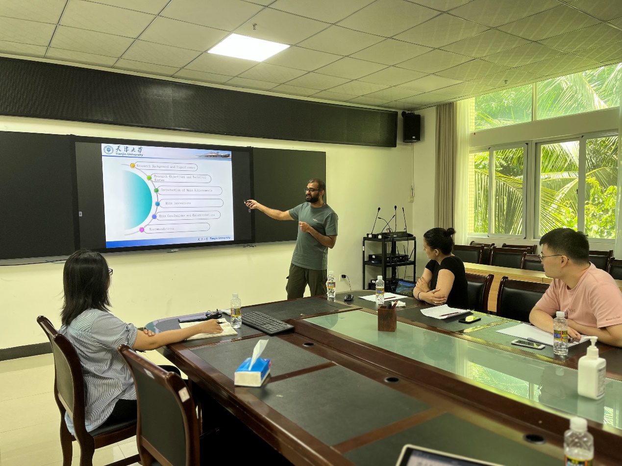 随行的两名博士研究生Aqib Zahoor和Nihed Benani为公司师生分别作题为“依托电动车和可再生能源实现交通领域2060年碳中和”与“蓝碳与碳市场:科学研究和技术开发的综合路径”的交流研讨分享。伟德bv1946官网-加州大学戴维斯分校能源和交通发展联合研究中心(简称“海大-UCD能源和交通研究中心”)执行主任吴丹副教授对两位博士生的报告作精彩点评,并提出后续研究拓展与合作的思路。