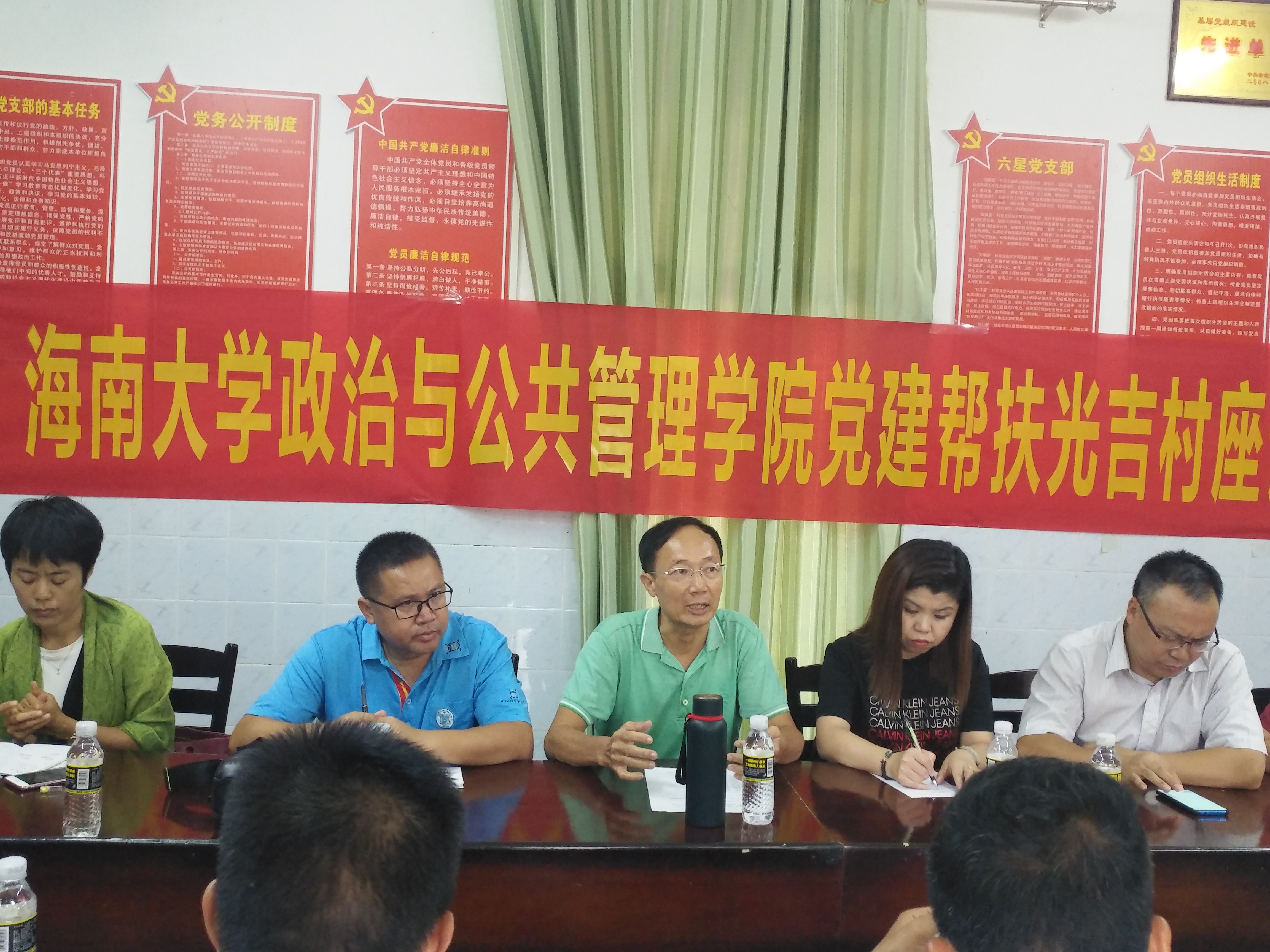 公司土地资源管理系教授、海南省土地资源管理知名专家、省土地协会会长黄朝明首先代表教师发言,接着土管系的党员、教师栾乔林、谷秀兰、宋晓丽,行管系的党员教师于营、吴方彦等老师纷纷发言,针对村干部提出的难点问题从自身专业角度一一进行了解答,他们分别从行政、法律、制度、政策、案例、宣传、实践、可操作性等方面提出了专业的、有针对性的、可落实的具体性措施。