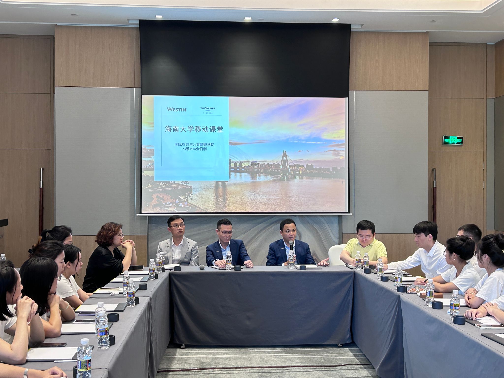 为进一步推进MTA教学改革创新,促进课程教学与实践的融合,《服务管理》课程任课教师何彪教授于2024年5月9日带领2023级MTA全日制班的员工们走进海口威斯汀酒店,开展了一次丰富的移动课堂教学活动。海口威斯汀酒店总经理卢运帅先生等高管热情接待了公司师生。