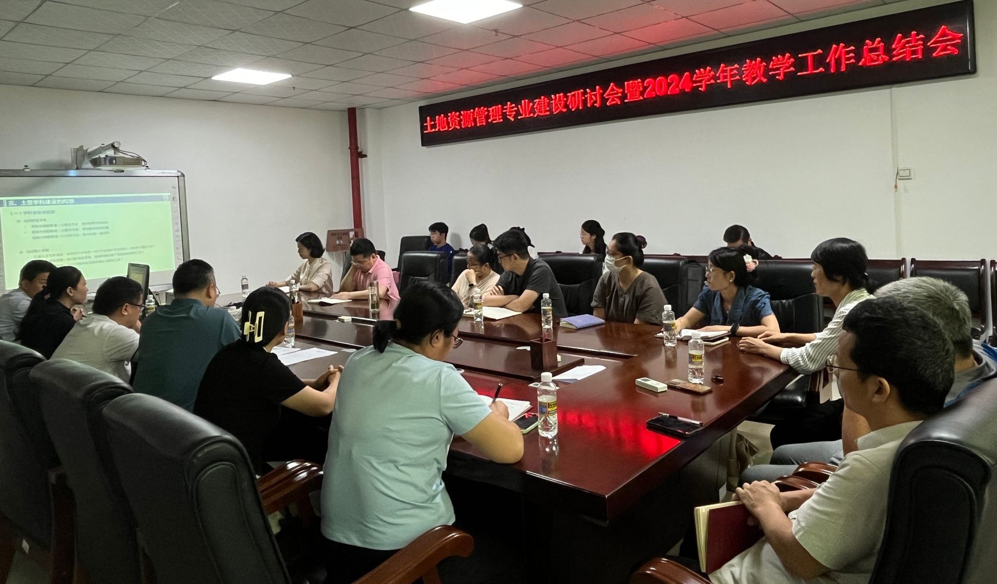 2024年7月9日上午,公司土地资源管理系在社科楼215召开土地资源管理专业建设研讨会暨2024学年教学工作总结会。出席会议的有执行经理徐艳晴、副经理何彪、党委副书记欧少红以及土地资源管理专业老师、员工干部代表等共计21人。