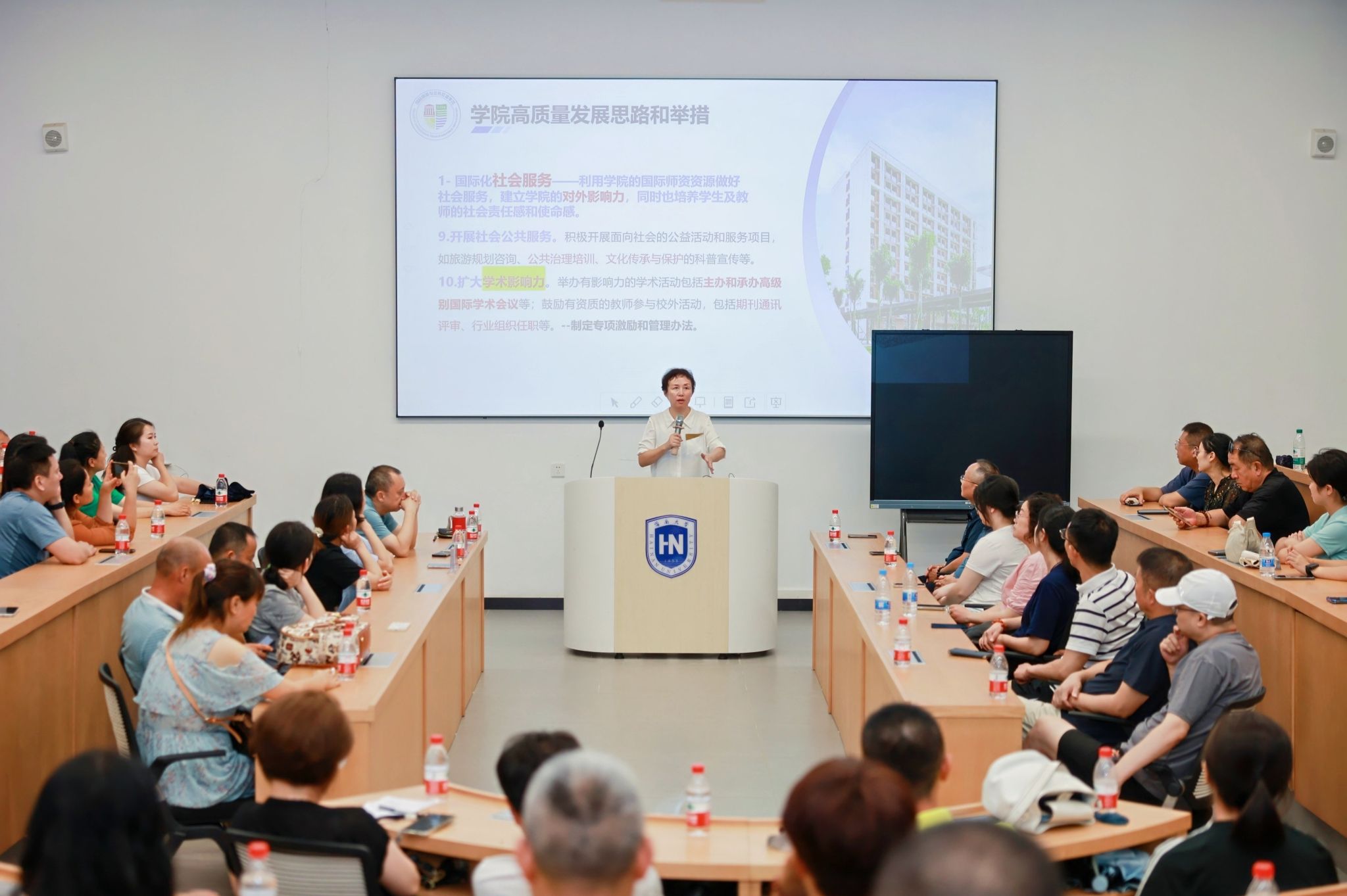 2024年8月31日下午,国际旅游与公共管理公司2024级新生家长会在观澜湖校区3A103教室成功举办。本次见面会旨在搭建家校沟通的桥梁,增进家长对公司的信任与理解,共同为新生们的大学之旅保驾护航。公司经理王琳、党委书记郭强、党委副书记欧少红出席会议,2024级新生及家长参加会议。