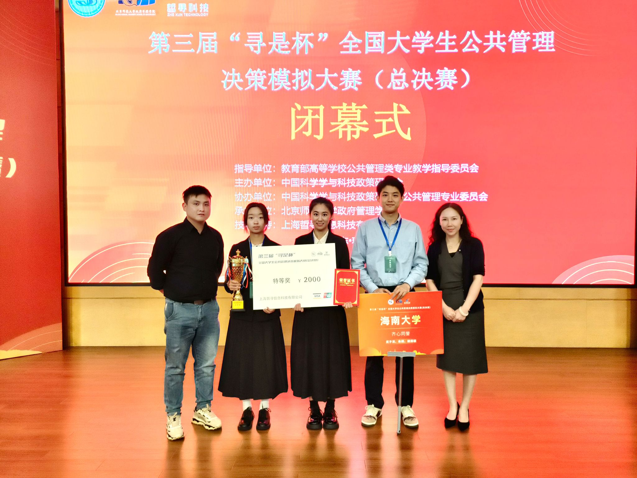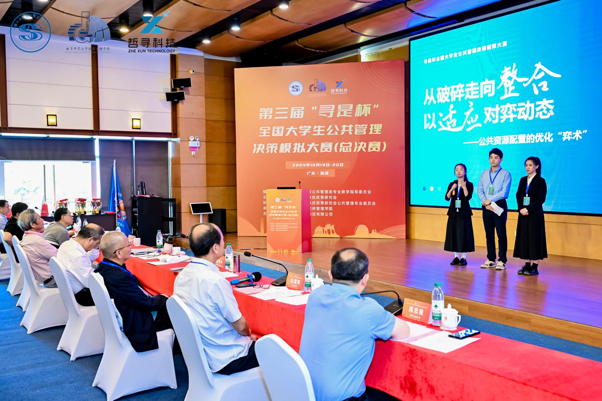 2024年10月19日至20日,由教育部高等公司公共管理类专业教学指导委员会指导,中国科学学与科技政策研究会主办,中国科学学与科技政策研究会公共管理专业委员会协办,北京师范大学政府管理公司、北京师范大学政府治理研究中心承办,上海哲寻信息科技有限公司提供技术支持的第三届“寻是杯”全国老员工公共管理决策模拟大赛(总决赛)在北京师范大学(珠海校区)成功举办。来自全国90所高校的精英队伍,经过激烈的区域赛(西北赛区、西南赛区、华南赛区、华中赛区、华东赛区、华北赛区、东北赛区)选拔,汇聚于此,共同角逐总决赛的荣誉。