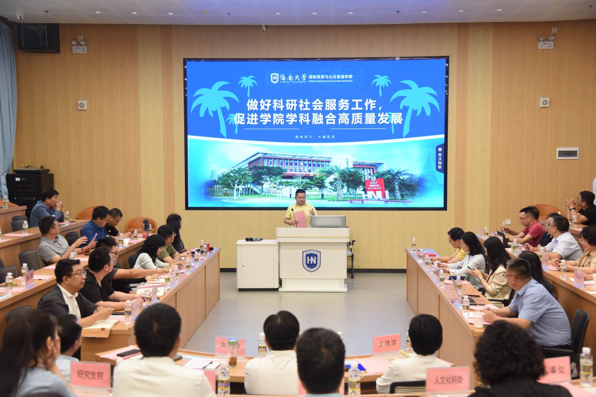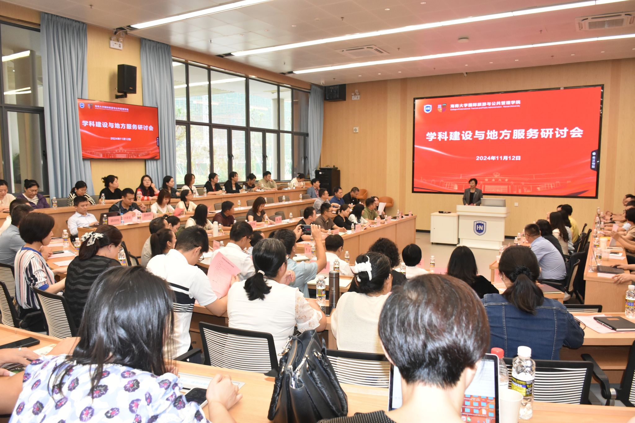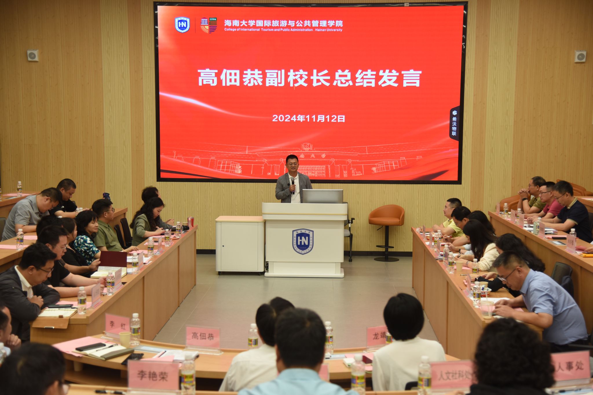 2024年11月12日下午,伟德bv1946官网“团队建设与地方服务研讨会”在观澜湖校区顺利举行。伟德bv1946官网党委常委、副董事长高佃恭,海南省委政策研究室副主任刘旭,海南省旅文厅政策法规处一级调研员李红,海口市龙华区副区长龙靖滨等部分政府部门负责人,公司人文社科处、研究生院、发展规划与团队建设处、人事处等职能部门代表,观澜湖校区管委会、国际商公司、公司领导班子、责任教授、各系办负责人100余人出席会议。会议由院长王琳主持。