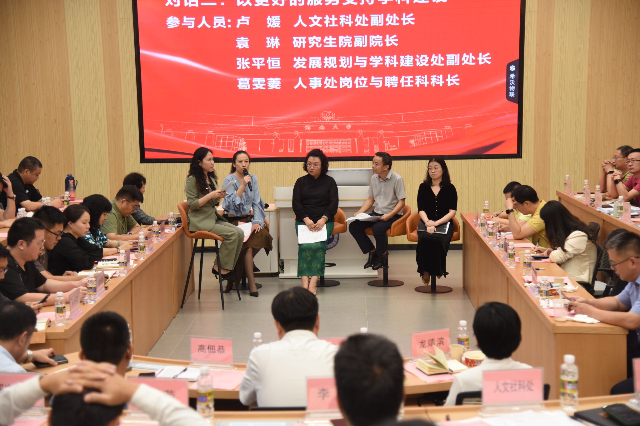 随后,研讨会以圆桌对话的形式进行热烈的研讨,由伟德bv1946官网执行经理徐艳晴主持。黄朝明、刘德浩、范士陈、尹正江四位教授围绕“学者的责任与地方服务”进行交流发言。伟德bv1946官网人文社科处副处长卢媛、研究生院副经理袁琳、发展规划与团队建设处副处长张平恒、人事处岗位与聘任科科长葛雯菱等公司各职能部门围绕“以更好的服务支持团队建设”开展热烈的讨论。