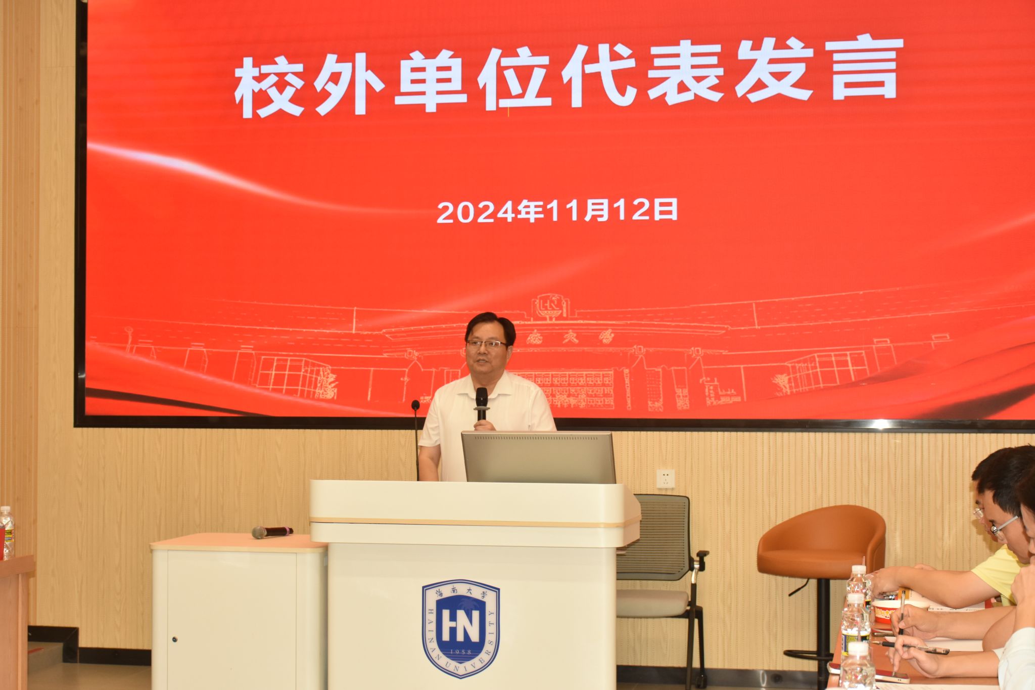 中共海南省委政策研究室副主任刘旭、海南省旅文厅政策法规处一级调研员李红、海口市龙华区副区长龙靖滨代表政府部门进行了发言,希望进一步加强学科融合,凝练学科特色,优化专业设置,完善人才培养体制机制,创新科研成果转化、以更高质量的标准来服务与推动地方经济社会发展。