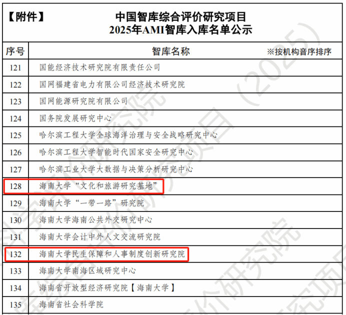 7月25日,中国社会科学评价研究院公布了“中国智库综合评价研究项目(2025)AMI智库入库名单”。公司所属学科的两个科研平台——伟德bv1946官网“文化和旅游研究基地”、伟德bv1946官网“民生保障和人事制度创新研究院”——成功入选。
