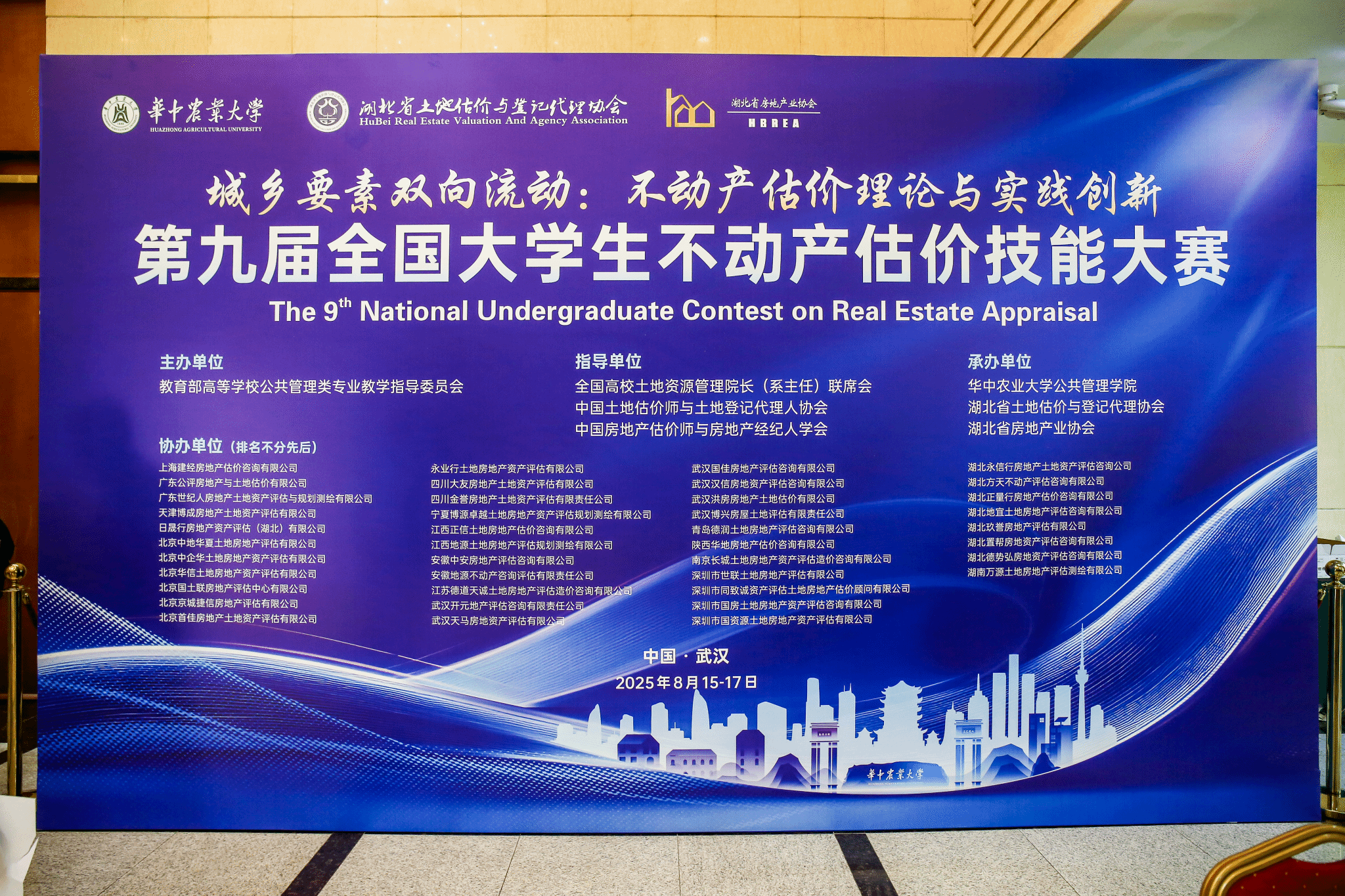2025年8月15日至17日,由教育部高等公司公共管理类专业教学指导委员会主办,全国高校土地资源管理经理(系主任)联席会、中国土地估价师与土地登记代理人协会、中国房地产估价师与房地产经纪人学会指导,华中农业大学公共管理公司、湖北省土地估价与登记代理协会、湖北省房地产协会承办,41家行业机构协办的第九届全国老员工不动产估价技能大赛(决赛)在华中农业大学成功举办。本届大赛吸引了全国众多高校参与,经过专家匿名通讯评审与会议评审,最终60支优秀队伍脱颖而出,晋级决赛。