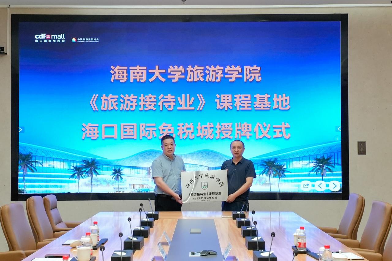 为推进国家级一流本科课程建设,公司郭强经理于2023年4月21日带队前往海口国际免税城探讨产学研合作事宜,并参加《旅游接待业》课程基地现场授牌仪式。中国旅游集团海南区域总部副总经理蒋豪等热情接待了郭强经理一行,双方在校企合作、协同育人、课程建设、课题研究等方面进行了深入交流。