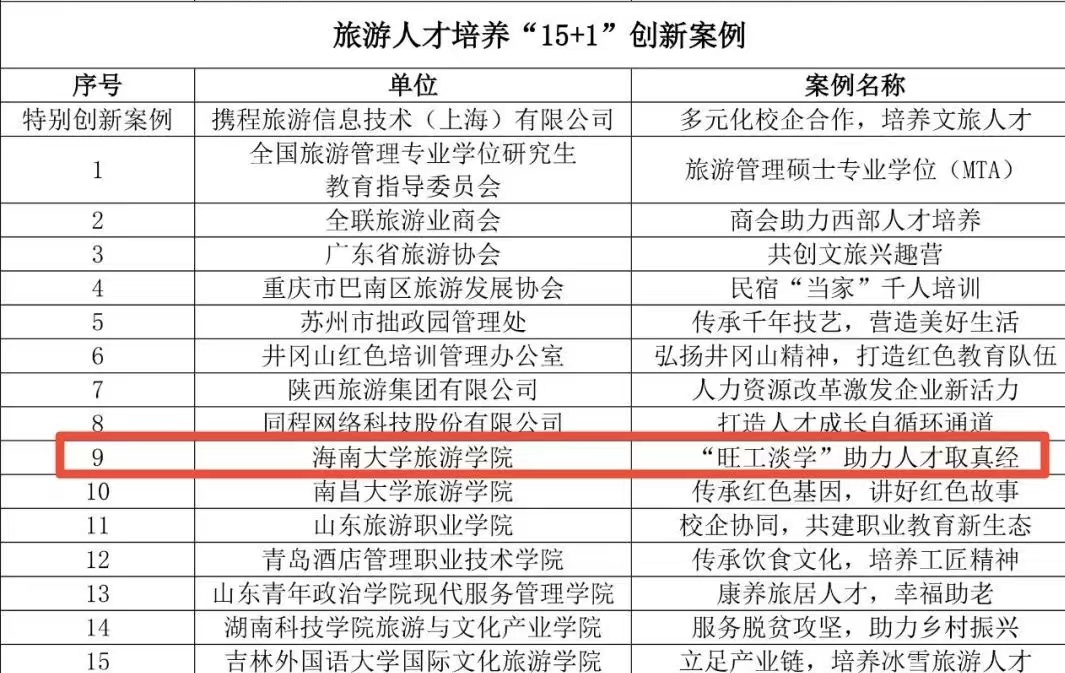 2022年旅游人才培养创新案例名单