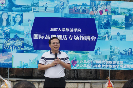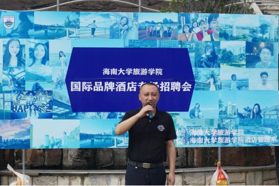 本次招聘会也荣幸地邀请了海口万豪酒店总经理张世戎先生亲临现场并致辞,张世戎先生代表出席招聘会的各酒店,从行业的独特视角,分析了当前的酒旅业发展现状,并对即将开展专业实习的大三、大四员工提出了中肯的建议。