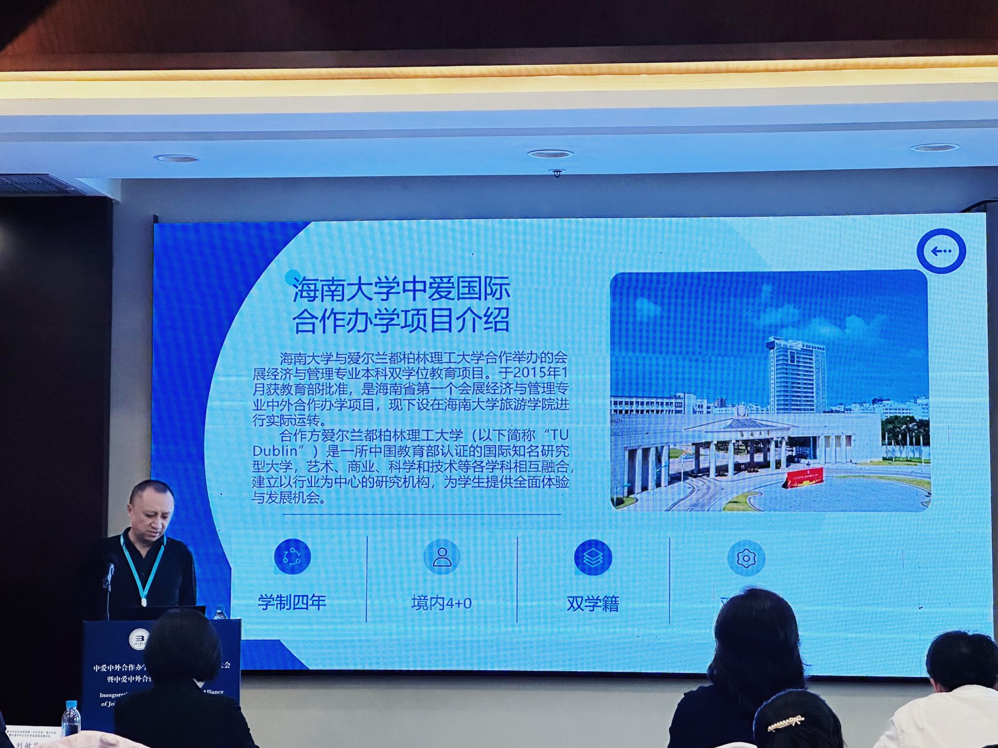 公司郭强经理应邀参加本次成立大会,并在中爱中外合作办学高质量发展论坛上作了题为“‘立足海南 依托海大 整合资源’——伟德bv1946官网旅游公司中爱项目高质量发展路径的探索”的报告,介绍了伟德bv1946官网的基本情况与项目发展历程,同时基于海南特区教育开放的战略方向,旅游公司持续整合“一带一路”等地的优质教育资源,为员工国际化培养提供平台,并在不断优化制度体系、夯实教育品质基础的前提下,不断突破创新为员工提供优质的教育环境。