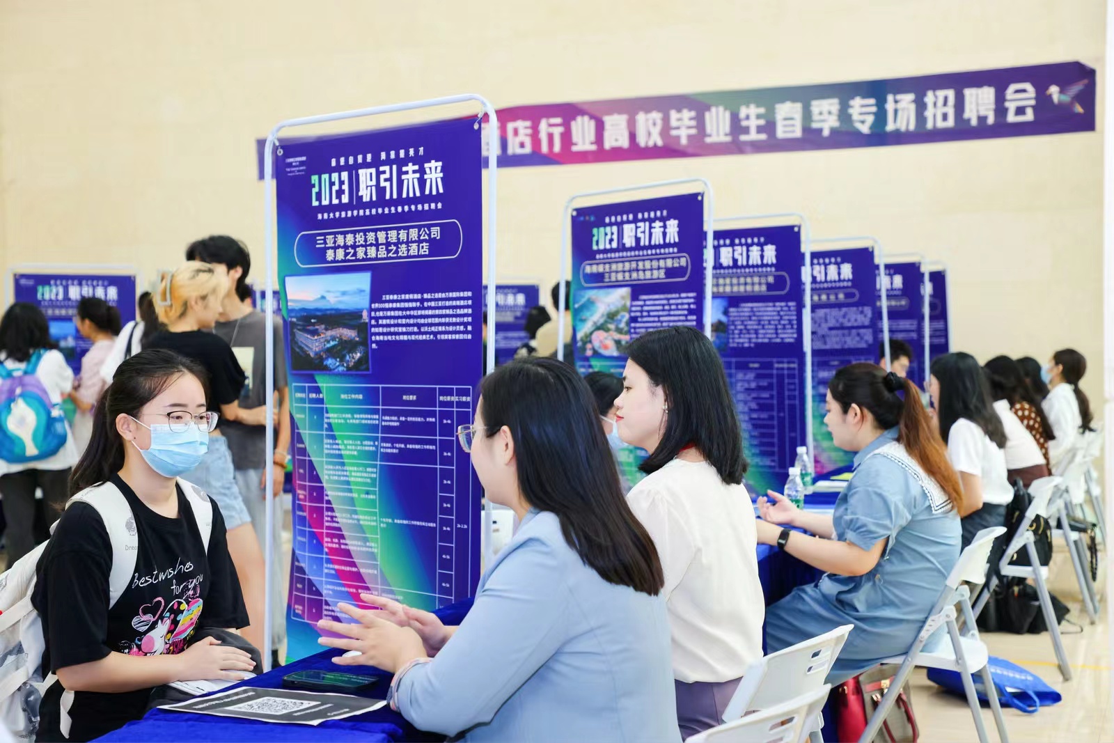 2023年4月7日上午,受旅院公司和今朝书院邀请,三亚市海棠区委组织部(区委人才发展局)和海棠区人社局在伟德bv1946官网思源学堂举办旅游酒店行业人才专场招聘会。