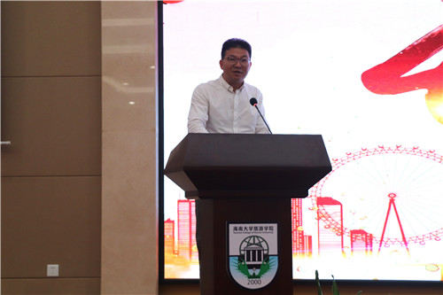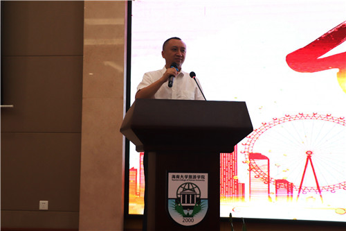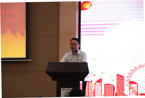 观看完视频,教师代表胥兴安老师上台演讲,进一步为大家在大学的迷途中指点迷津。