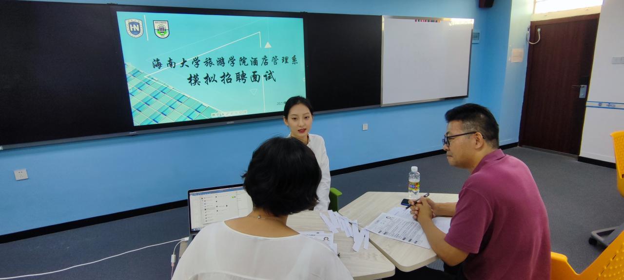 分享结束后,模拟面试按照简历投递、英文自我介绍、专业知识问答等环节井然有序地开展,每一位同学都以饱满的姿态参加本次面试,他们展现了海大酒管人的精神面貌。经过两个小时紧张的面试,所有同学都得到了属于自己的一份答卷。
