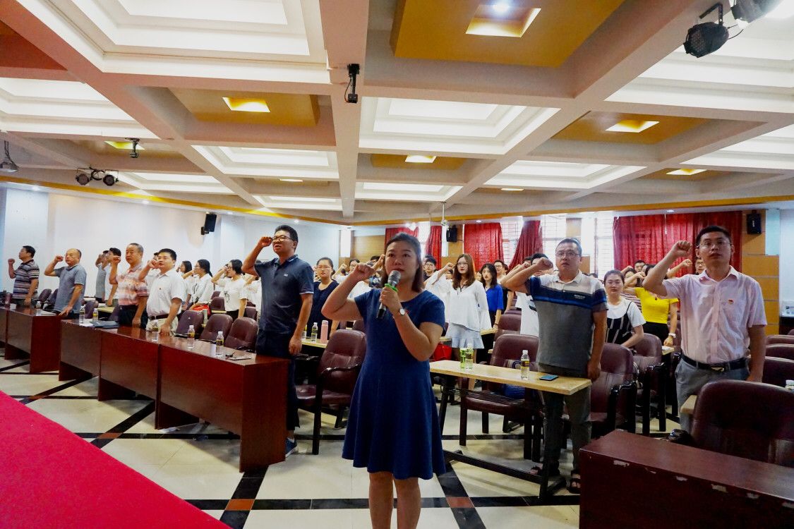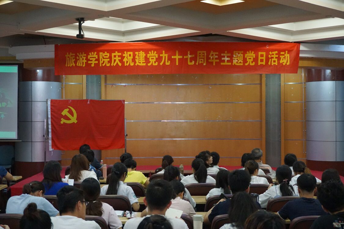 2018年7月1日上午9:00,伟德bv1946官网旅游公司在7教多功能厅隆重举行庆祝建党九十七周年主题党日活动。旅游公司党委书记房云昆,党委田良、李晓东、符涛,党支部书记何彪、谢祥项、林豪燕、石雄伟、邹靖、罗富晟、吴东藩和全体员工党员参加了此次主题党日活动。