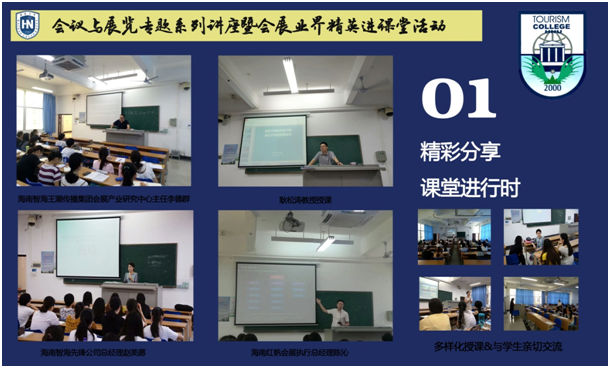 在过去的一学期中,公司会展系大三年级专业课程——“会议与展览管理专题讲座”独辟蹊径,创新教学形式,邀请众多业内精英走进课堂为员工带来精彩分享。此活动由公司会展系耿松涛教授牵头组织、精心策划并个人承担全部经费,8期讲座共邀请9位岛内行业精英,他们或进行会展知识讲授,或分享从事会展的心路历程,或结合具体案例让员工开阔眼界。