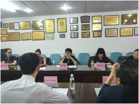 周红霞老师主持会议。会见中,韦开蕾经理首先对澳方代表团到访表示热烈欢迎,然后介绍了公司的基本情况,并介绍了公司国际化办学的情况,她希望以此次访问为契机,推动两校建立友好院校关系,在师生交流等领域开展合作。徐亚星老师代表外事处,对双方合作表示肯定,同时指出堪培拉大学的会展旅游管理专业与旅游公司的旅游管理专业对口,将积极推动并鼓励旅游公司参与到两校合作进程中。
