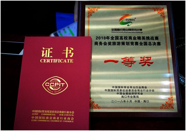 2018年10月26-28日,由中国国际贸易促进委员会商业行业分会、中国国际商会商业行业商会、中国会展经济研究会共同主办的“2018全国高校商业精英挑战赛商务会奖旅游策划竞赛全国总决赛”在海口隆重举行。