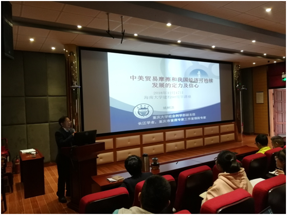 姚树洁教授围绕“中美贸易摩擦和我国经济可持续发展的定力及信心”这个主题作讲解报告。此次讲座的主要内容包括以下几个方面:(1)中美贸易摩擦的本质特征。(2)中国应对美国挑战的底气。(3)中国经济可持续发展定力及信心。(4)中国特色经济理论及实践。(5)中国从容面对挑战及困难。姚教授最后总结提出,中美贸易摩擦是中国经济发展必然要面对的难题,中国的崛起改变了全球政治经济地缘,而改革开放从来不是一帆风顺,中国特色政治经济社会文化优势具备跨越中等收入陷阱和实现中国梦的条件,关键在于自信,坚定地走自己的路!