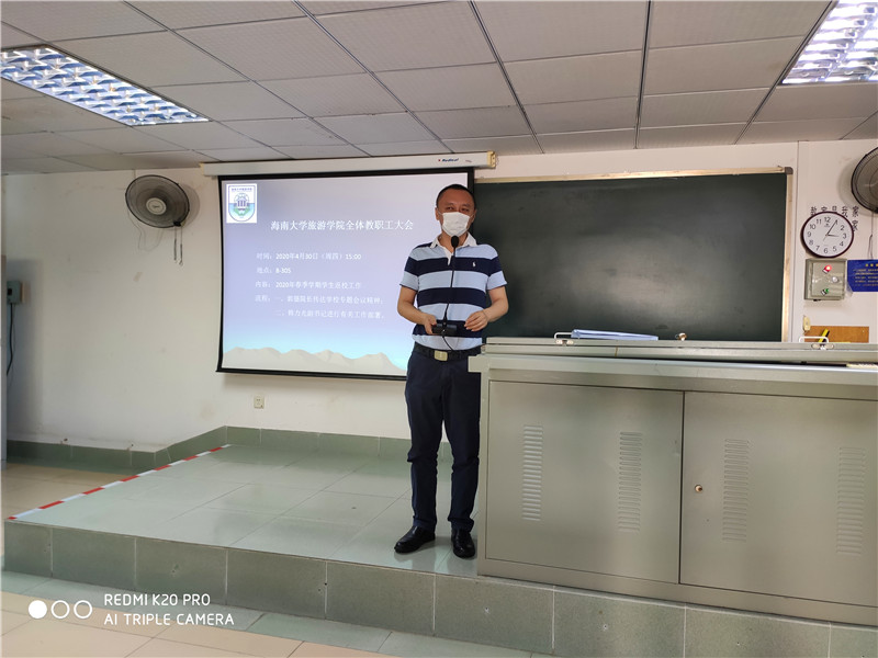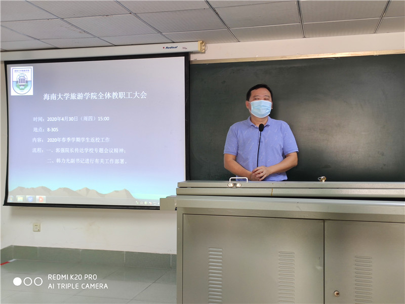 2020年4月30日,旅游公司在8-305召开春季学期返校复学工作动员大会,在校的教师及在岗管理人员都参加了会议。郭强经理和韩力光副书记(主持党委工作)分别传达和部署了公司迎接师生返校复学工作的相关精神。