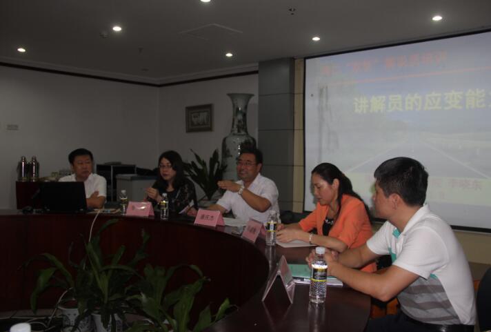本次培训由旅游公司汪应曼老师讲授“讲解员礼仪规范”,由李治老师讲授“讲解员的解说技巧”,由李晓东老师讲授“讲解员的应变能力”。培训班采用理论与实践相结合的方式。授课运用视频、案例分析、课堂讨论等方法,理论联系实际,注重课堂互动。