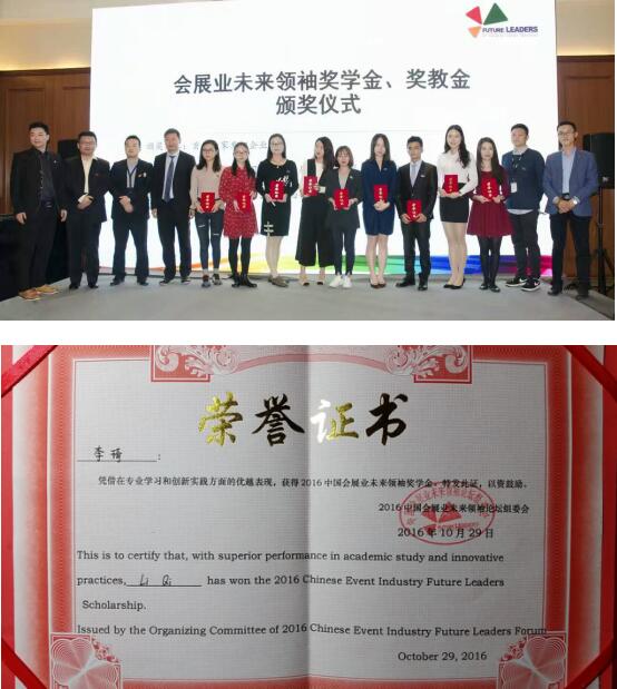 继去年公司2012级会展经济与管理专业员工史源荣获2015年励展奖学金之后,公司会展专业员工再创佳绩,2014级会展经济与管理专业员工李琦荣获“2016年中国会展业未来领袖奖学金”。