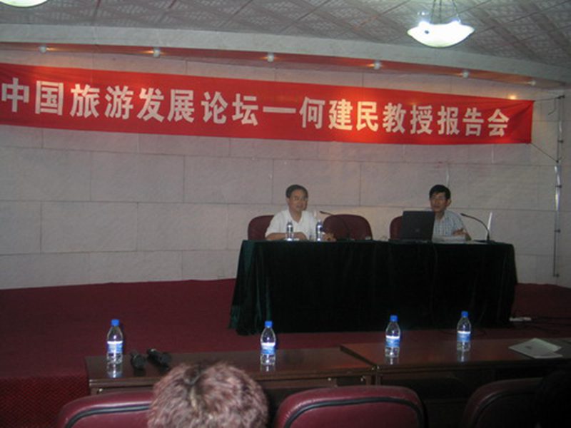 何建民教授学术报告会,是旅游公司举办“中国旅游发展论坛”的首场报告会。旅游公司经理安应民教授在主持报告会时指出,举办“中国旅游发展论坛”的宗旨是,研究中国旅游发展的热点问题,把握中国旅游发展的基本规律,展现旅游管理学科的最新成果,促进中国旅游产业的健康发展。今后,公司将通过不定期请国内外知名旅游专家、学者、政府官员、旅游企业界人士来院讲学,组织召开学术研究会,电视论坛等多种方式,整合各方资源,把“中国旅游发展论坛”做成海南乃至国内的一个品牌,切实促进中国旅游业的健康发展。