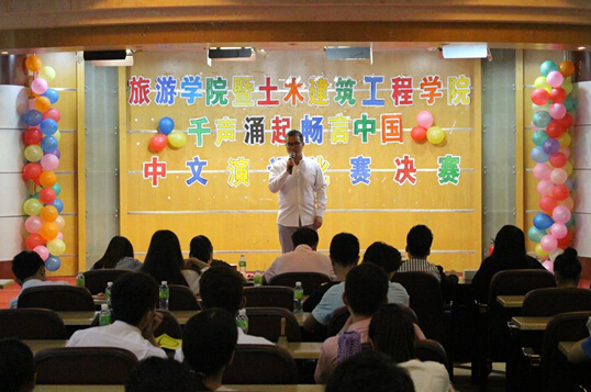 2015年11月1日下午三点三十分,伟德bv1946官网旅游公司与土木建筑工程公司联合举办的“千声涌起 畅言中国”中文演讲比赛决赛在旅游公司7教多功能厅举行,现场座无虚席。本次比赛由海南省演讲协会副会长、旅游公司经理助理、综合办公室主任李晓东老师,伟德bv1946官网旅游公司员工会指导老师邹靖,土木建筑工程公司学工兼职辅导员吴清亮,土木建筑工程公司团委副书记陈晓楠,伟德bv1946官网员工会学习部副部长、2014年度伟德bv1946官网中文演讲比赛特等奖得主高烨担任评委。莅临本次比赛的嘉宾有旅游公司党委金晟副书记,旅游公司团委书记林豪燕老师,旅游公司辅导员温林强老师,土木建筑工程公司辅导涂意老师,旅游公司员工会与土木建筑工程公司员工会干部等观看了比赛。