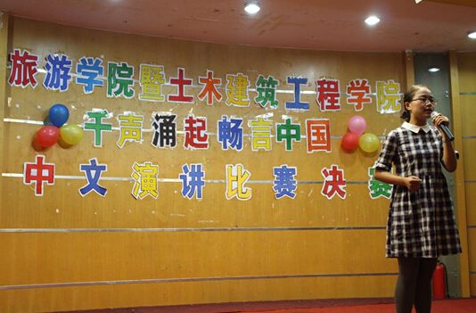 首先,旅游公司文工团成员魏雨萌为大家献上一首《爱的海洋》使会场气氛高涨起来,主持人进行开场致辞并介绍到场评委及嘉宾后,比赛正式开始。比赛分为两轮,第一轮为主题演讲,第二轮为即兴演讲。各位选手通过精心准备,将自己对祖国的看法用慷慨激昂的演讲传递给在场的每一位老师与同学,有的选手从日常的小事中谈论祖国,有的选手从祖国上下五千年的历史谈论祖国。大家在台上各抒己见,言语及表现让评委与嘉宾频频点头称赞。上半场的比赛结束,主持人通过中场游戏“抢凳子”活跃了会场的气氛,现场热闹非凡。游戏结束后是即兴演讲环节。选手们依次陈述自己对所抽取题目的看法,他们或谆谆善诱、或侃侃而谈、或激动煽情、或低吟抒情,流畅而出色的演讲获得现场观众的掌声。