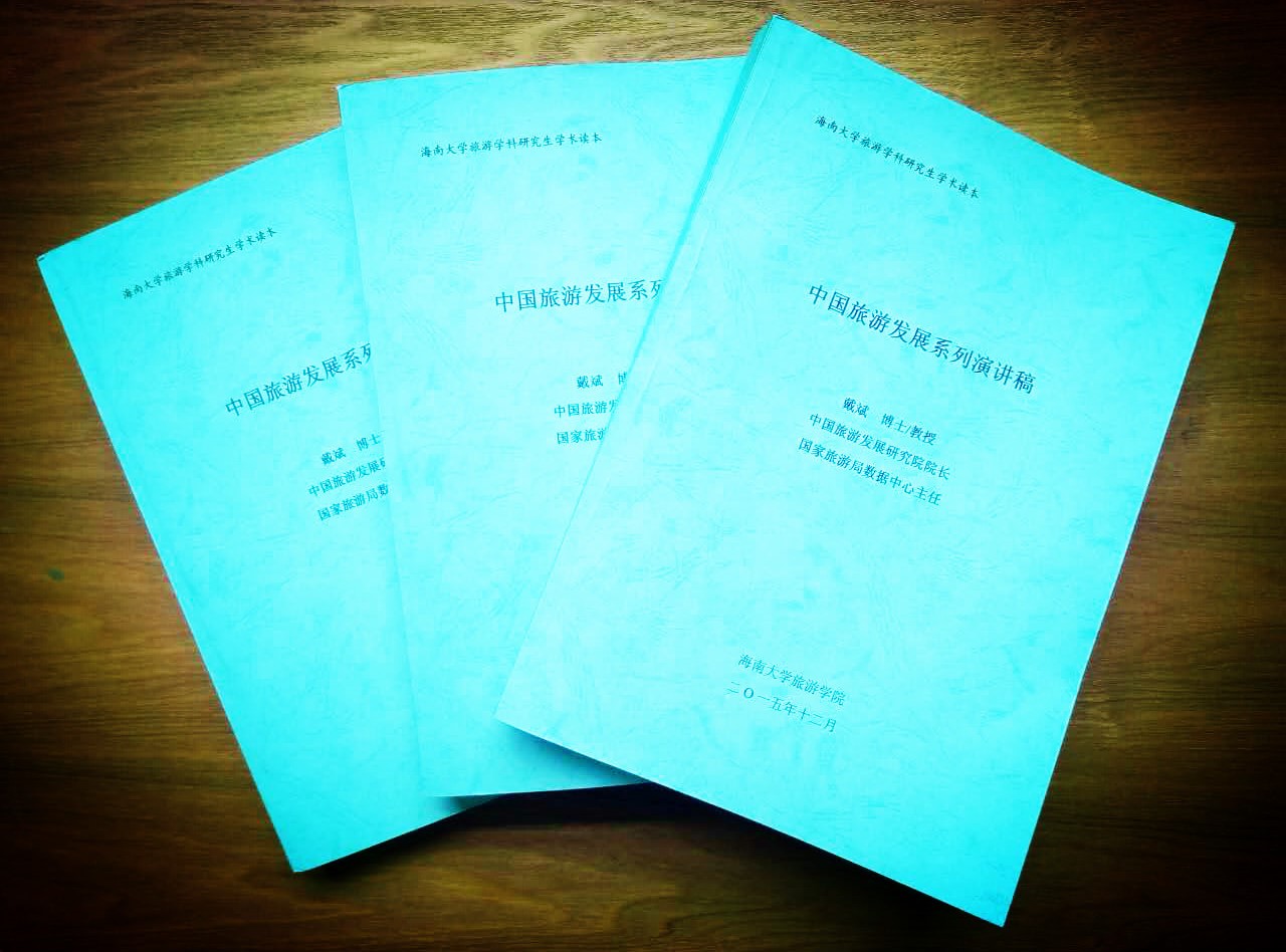 2015年12月,为方便伟德bv1946官网旅游公司师生学习和交流,由公司旅游管理专业硕士生导师谢祥项副教授指导,赵云、潘悦同学整理汇编的伟德bv1946官网旅游学科研究生课外学习读本之一《中国旅游发展系列演讲稿》汇编工作顺利完成。