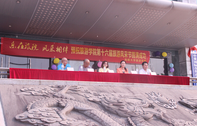 为了丰富员工的校园文化生活,旅游公司开展旅游风采节系列活动,以展示公司各专业员工的风采。2016年4月16日上午八点三十分,第十六届旅游风采节开幕式在旅院三教广场准时开始。旅游公司韦开蕾经理、公司党委韩淑梅书记、金晟副书记、胡涛副经理、信管系系主任董林峰老师,以及公司部分老师和全体辅导员出席了此次开幕式。