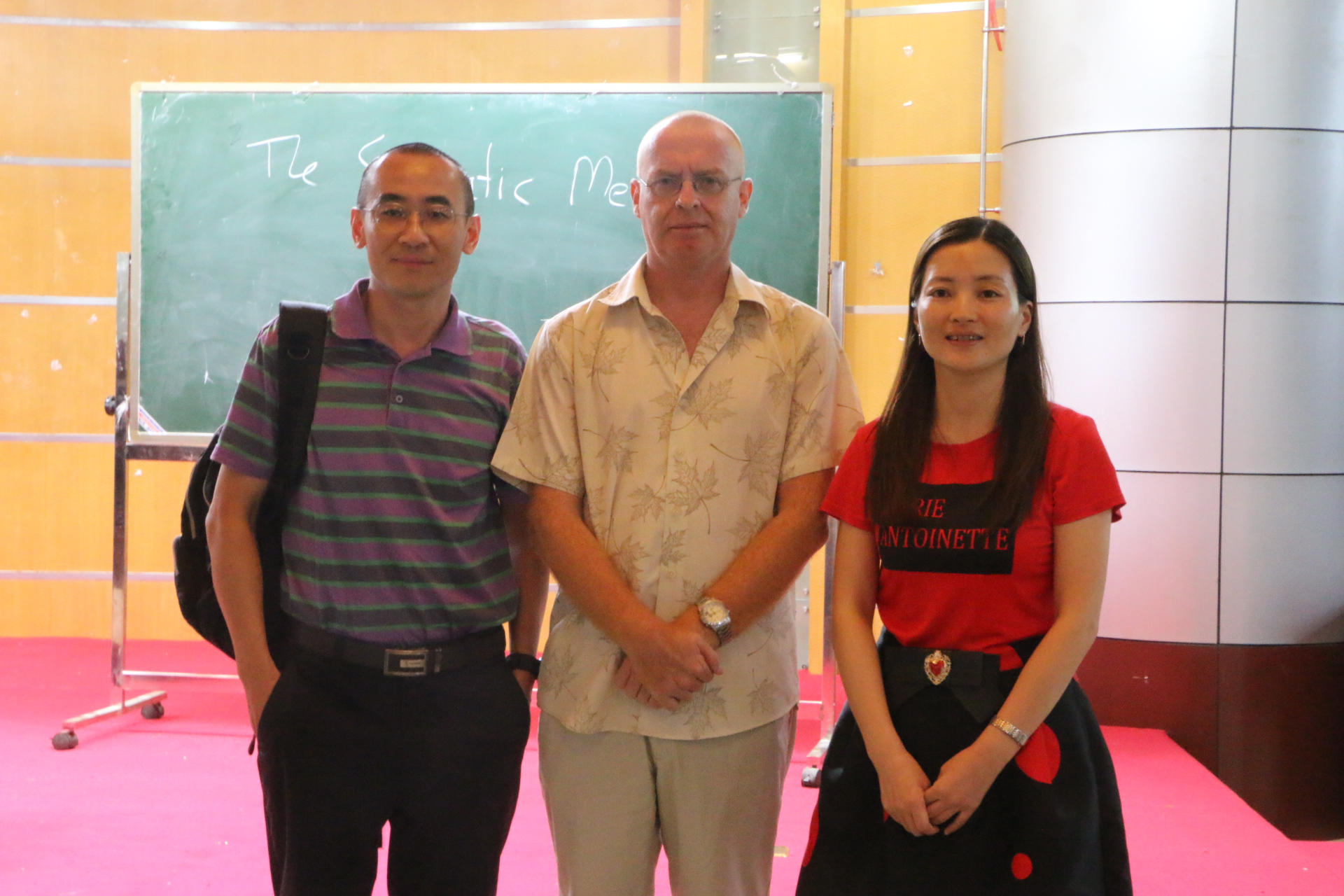 讲座后旅游公司孙建军副经理与讲座主讲人Robert及应外系主任冯艳昌老师的合影