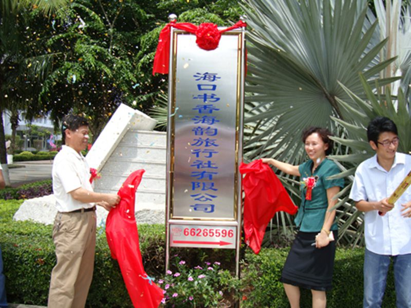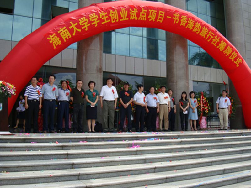 为了响应和贯彻《2009年海南共青团促进青年就业创业行动实施方案》文件精神,重树海南旅游服务新形象,为海南国际旅游岛的建设贡献力量,公司积极参与、大胆创新,并于2009年5月15日上午10:30在伟德bv1946官网旅游公司四号教学楼前广场隆重举行了海南省老员工创业试点项目——海口书香海韵旅行社有限公司挂牌仪式。