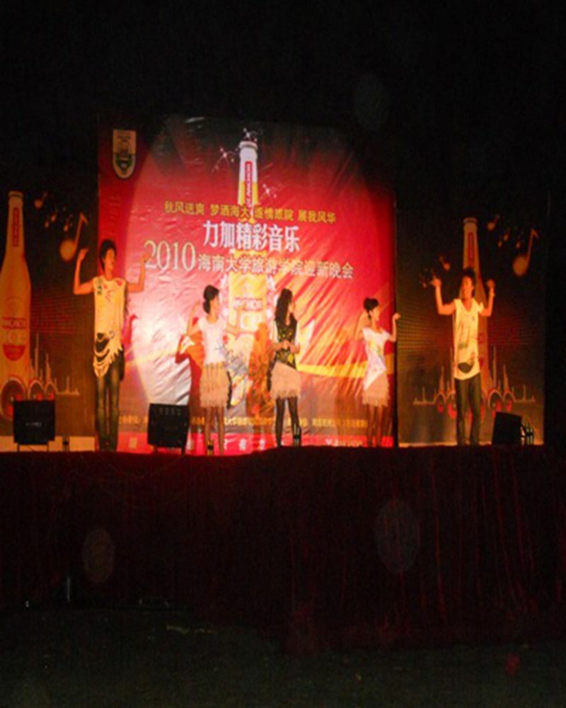 在晚会的开始,王琳经理对此次晚会发表致词。首先,经理为这些活跃在旅院2010级崭新的青春面貌表示欢迎,并预祝同学们的光辉前程。之后,王琳经理对过去一年的时间里提出了几个感谢:感谢老师、同学们为旅院的辉煌所付出的工作与努力;感谢此次活动的赞助商——海南亚洲太平洋酿酒有限公司对本次晚会的冠名支持,并对一年来团学工作取得的成绩给予肯定,对公司员工工作提出希望,并预祝晚会圆满结束。