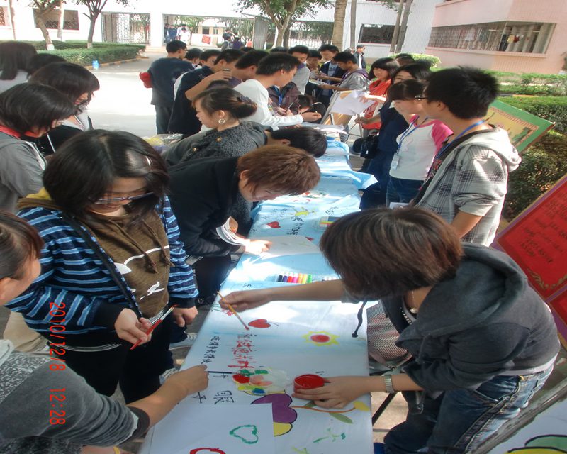 活动现场,也许是大家对这个活动并不是太了解,刚开始来的同学并不多,但当听了团委干事们的详细介绍后,大家纷纷驻足停下,挥笔泼墨。现场气氛非常火爆,无论是偶然经过的还是那些专程赶来的同学,都迫不及待地在这张爱心蓝布上用自己的一片热心与爱心写下了内心最真挚动人的话语,还有很多同学在上面用绘画的方式表达了自己对残联儿童的祝福。不仅如此,同学们还亲手制作风车,并写上对孩子们的关爱与鼓励。“大手牵小手,大心连小心”、“我们的爱会照耀你们,愿你们健康快乐成长”、“希望在,世界就在”、等温馨的言语道出了我们共同的心声。很多同学表示,作为员工,自己能为这些孩子做的事情十分有限,所以这些力所能及的事自然是义不容辞,哪怕只是简单的几句话,相信也能给那些孩子们带来温暖与勇气。我们相信,给残联小朋友送祝福,收获的不只是小朋友们,更是我们自己,是他们,让我们懂得了感动,让我们懂得了如何去爱。