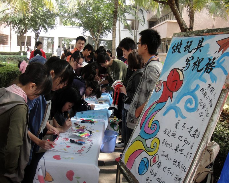 为了增强老员工的爱心意识,给大家提供一个献爱心的平台。同时也为12月19日残联儿童入海大做前期的准备和宣传,让残联的小朋友们到来时感受到海大同学的关爱与温馨,12月8日,伟德bv1946官网旅游公司团委在公司食堂设点,开展了为残联小朋友现场收集祝福语和制作玩具的活动。