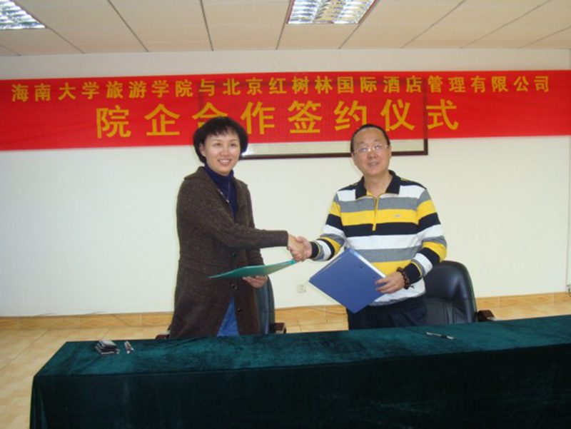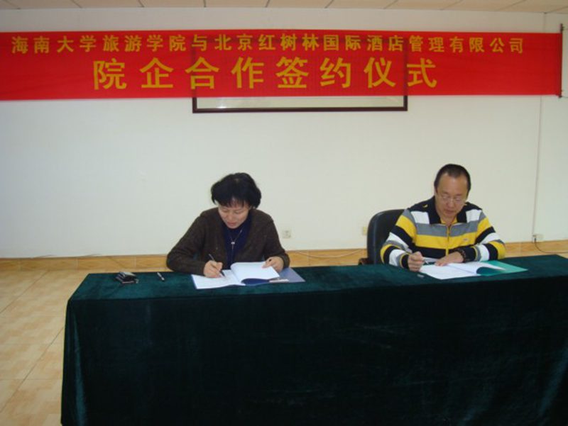 为更好地搭建理论基础和实践操作紧密结合的教育平台,培养更多高素质、理论知识扎实、岗位实务操作能力强、符合企业发展所需的人才,2011年3月23日,伟德bv1946官网旅游公司与北京红树林国际酒店管理有限公司就建立公司实习基地、企业员工在职教育基地等事宜签署协议。
