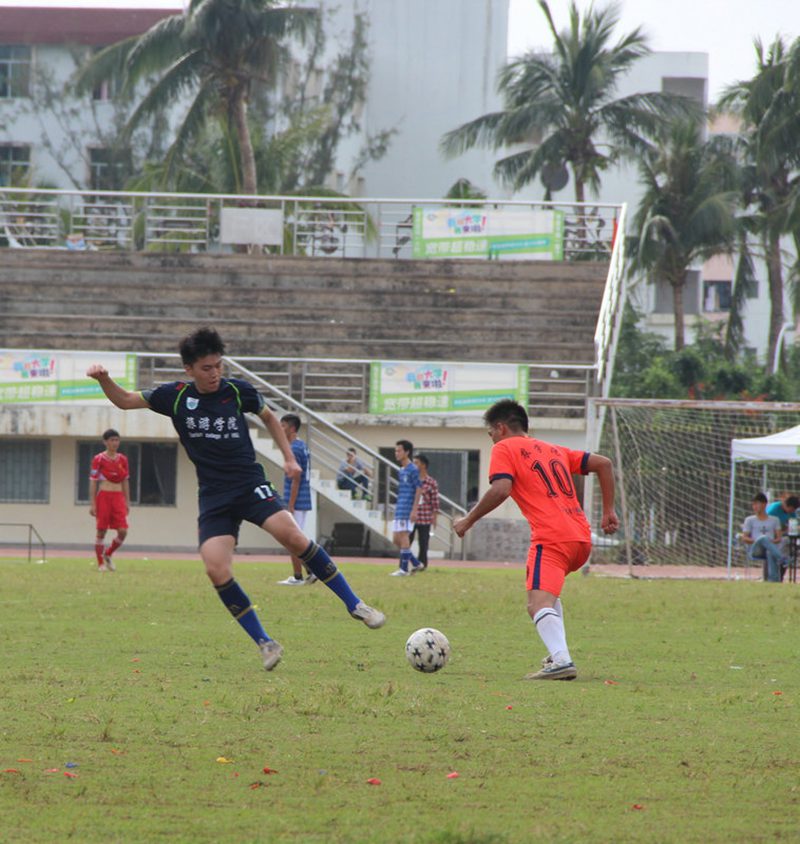 上午9时40分,比赛正式开始。刚开场,旅游公司便展示了要赢球的决心,第2分钟,旅院前锋11号蔡冠生带球突破吸引守门员注意,之后妙传17号汪志伟,17号禁区内轻松一脚将皮球踢入几乎空门的球门中,将比分改写为1:0,旅游公司迅速取得领先!第14分钟,18号石东明前场抢断单刀直入,但可惜被对方守门员出击解围。第25分钟,旅院形成良好配合,11号转身打门稍稍高出横梁。然而旅游公司不仅奋勇拼搏,还秉持着“友谊第一,比赛第二”的原则,比赛第18分钟,农公司前锋在争抢中受伤,旅游公司及时拿出了药箱给对方紧急治疗,诠释了体育道德的精神,也展现了旅游公司的良好风貌。下半场比赛依然胶着,暂时落后的农公司加大了攻势,不断冲击我方球门,而旅游公司的后卫及守门员依然表现神勇,没能让对手攻入一球。第40分钟,旅游公司依次进行了换人,15号何琎换下11号蔡冠生,20号周嗣鸿换下18号石东明,旅院也改成了防守反击战术。双方难解难分,第51分钟,农公司连续三次的角球机会非常危险,第三次对方前点头球险些破门,但守门员林勇及时将球收入怀中,而旅院的防守反击也多次给农公司造成威胁。第56分钟,19号彭兴初反击中摆脱对手后防线,一骑绝尘,农公司守门员赶紧出击,19号轻轻一挑,皮球稳稳当当地滚进对方毫无保护的球门,2:0!旅游公司就此锁定胜局。随着裁判员一声哨响,最终旅游公司以2:0力克农公司。