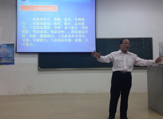在向同学们讲述了海南省会展的发展现状,海南省会展的发展道路之后,蒋会长通过其个人的几十年来的工作经验,向海大学子提出了学会做人、学会做事、练好内功等六点非常中肯、实用的建议,这为我们今后走上工作岗位、实现自己的价值提供了宝贵的建议。在讲座进入尾声阶段,同学们和蒋会长进行互动交流,整个讲座也进入了高潮,同学们积极踊跃提问,蒋会长也耐心细致地逐个回答同学们的问题,整个互动环节气氛热烈,时间已是晚上10点半,讲座即将结束了,但很多同学仍觉得意犹未尽,希望再有机会向蒋会长学习交流。