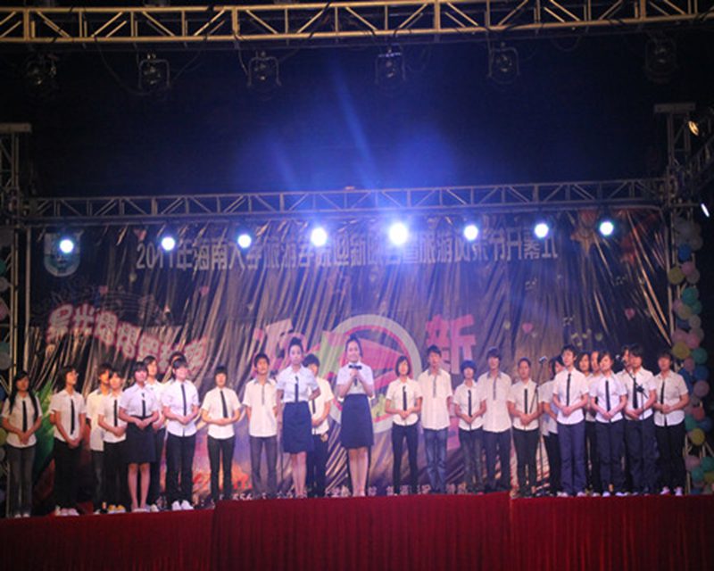 星光熠熠,梦萦海大,声舞不息,争奇斗艳,莘莘学子,山耀旅院。配上给力的音响,给力的灯光,给力的主持,2011年旅游公司迎新晚会暨旅游风采节开幕式于11月5日19:30在旅院三教广场盛大开幕。公司党委吕裕昌书记、金晟副书记及部分兄弟公司的老师和员工组织的主要负责人出席了本次晚会。在公司党委吕裕昌书记表达了对晚会的期待与祝福后,晚会正式拉开帷幕。