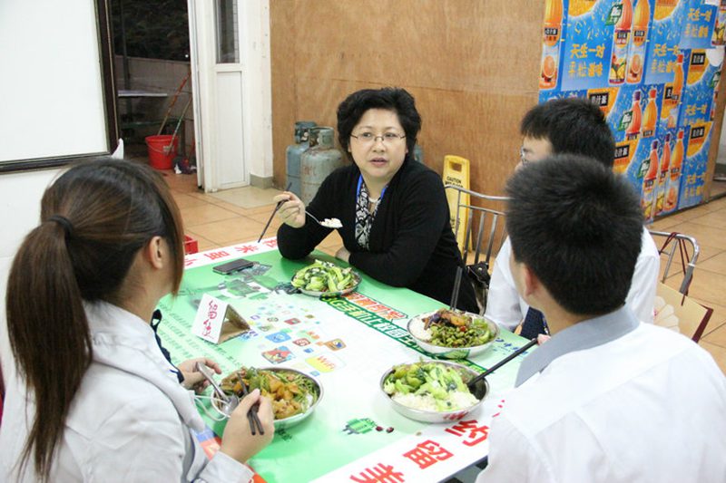 员工们与自己的导师在用餐中交流