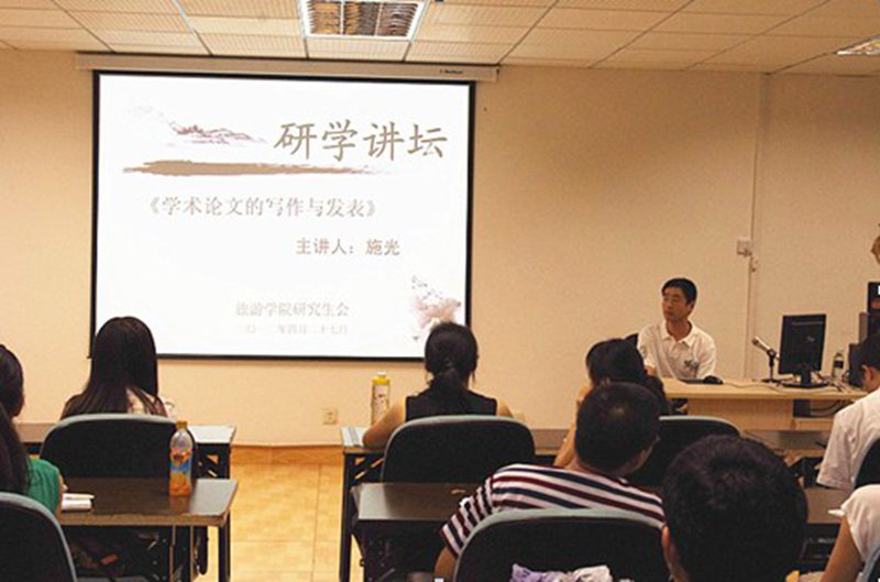 2012年4月27日晚上七点半,由伟德bv1946官网旅游公司研究生会举办的第一期“研学讲坛”在8教202室顺利进行。本次讲座邀请旅院应外系系主任施光教授主讲,旅院研究生会指导老师陈青老师也亲临现场指导,同时还有来自各个公司的研究生以及本科生到场聆听,现场气氛热烈,讨论激烈。