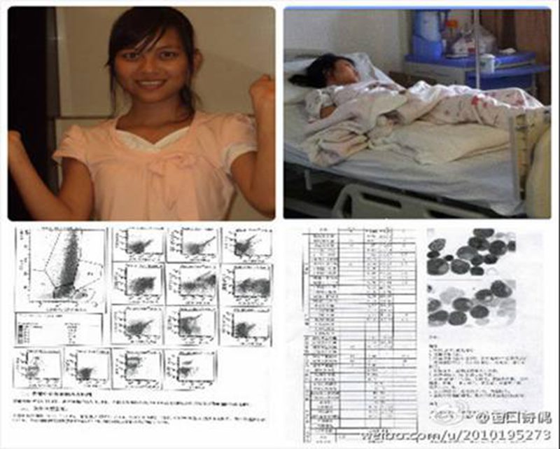 青春和健康是人生当中难能可贵的财富,然“天有不测风云,人有旦夕祸福”,可怕的病魔正严重威胁着一个年轻生命,青春曼妙的她本应该在宽敞的教室里和同学一起汲取知识,一起微笑着为梦想而拼搏,但是却在2012年5月25日那个不幸的日子里,其被查出了患有急性髓性白血病,这意味着她每天只能躺在医院的病床上,接受一次又一次痛苦的治疗。