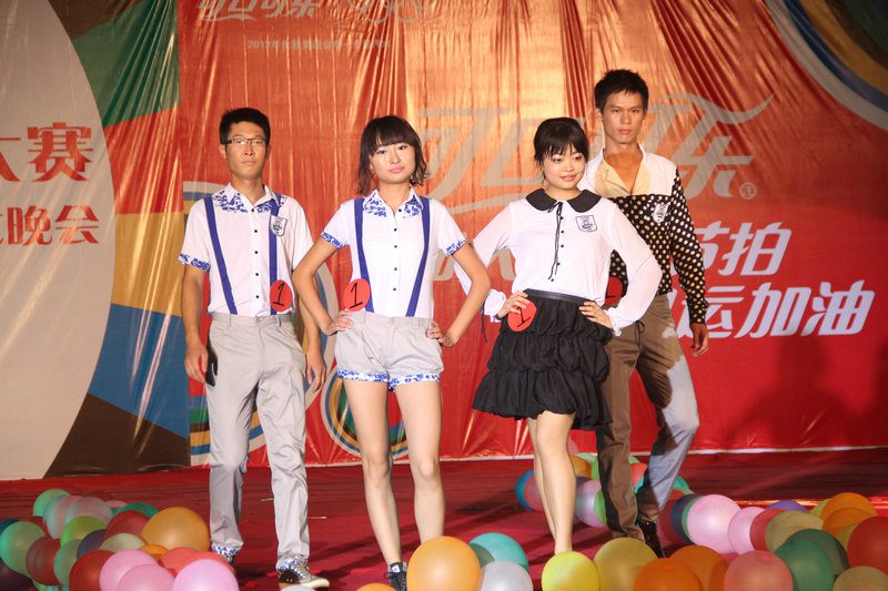 一场独特的开场秀,滑稽的表演,活灵活现的小丑把现场的气氛完全调动起来了,接着便是经过了初赛复赛后,从25幅作品中中脱颖而出的6幅作品进入决赛的院服设计展示,6组模特整体亮相一组组独到的设计,一位位神采飞扬的模特,让在场的评委、嘉宾以及各位观众无不目不转睛地紧随舞台上的一个个身影,唯恐错过任何一个精彩的画面。与此同时,院服设计师也对他们的作品理念进行了阐述,展示的最后评委老师也给出了中肯的意见。在前三组选手的设计作品展示和讲解过后,旅游公司历届院服和海南岛环保创意服饰也集体亮相,一件件美丽的服装,一道道妙丽的身影……现场的气氛再一次到达一个高潮!大家见证着别样的岛服展示,回想着历届院服的身影。紧接着进入了后三组选手的作品展示。出色的选手们得到了评委们的肯定,同时评委们妙语连珠式的评价一样赢得了现场的阵阵掌声。