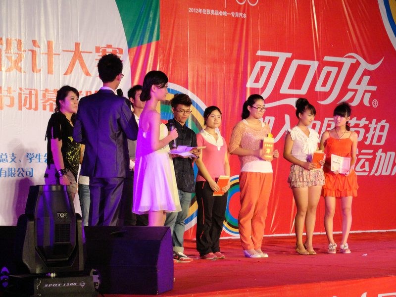 展示过后,就到了现场拉票环节,48位大众评审经过深思熟虑,把票投给了自己喜欢的选手。最终由10资环班夺得桂冠。一首由公司11级会展班带来的合唱《五月的鲜花》后,进入了五四颁奖环节,经过了一年的工作学习,公司优秀的集体和员工代表站上舞台领取到了属于自己的一份荣誉,同时也激励着大家为荣誉更加努力,而接下来由公司学工办王婷婷、陈青等老师带来的自编自演的歌舞《管他什么音乐》中,我们迈入了旅游风采节的颁奖活动,在大屏幕播放这公司这一期旅游风采各系列活动的VCR的同时,我们为创意广告秀、百米书画大赛、导游之星、主持人大赛及市场营销策划大赛颁奖。最后,一首“相亲相爱”为此次晚会画上了圆满的句号。