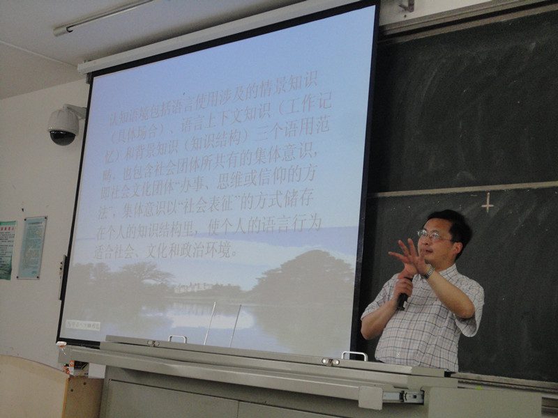 5月11日上午,上海外国语大学博士生导师俞东明教授为全校师生做了“语境与语言的理解和使用”学术讲座。虽然是周末,整个阶梯教室坐满了人,听众中有多个公司的师生。俞教授平易近人,幽默风趣,举例深入浅出,采用经典案例,说明语境对语言使用与理解的关系,使人有顿开茅塞之感。俞教授夸奖伟德bv1946官网学风好,周末都有这么多员工在上自习、参加讲座。