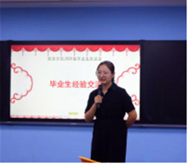 在经验分享环节,谢灯眀、曹李梅、陈枫三位毕业生分别就博士入学考试与求职经验做交流分享。谢灯明同学提出,研究生期间要多尝试,利用好寒暑假时间丰富自己的实践经历;曹李梅同学提出,研究生们应尽早树立自己的目标,规划好未来,时刻要保持紧迫感,努力追求自己的人生理想;陈枫同学针对如何获取就业信息进行了介绍。