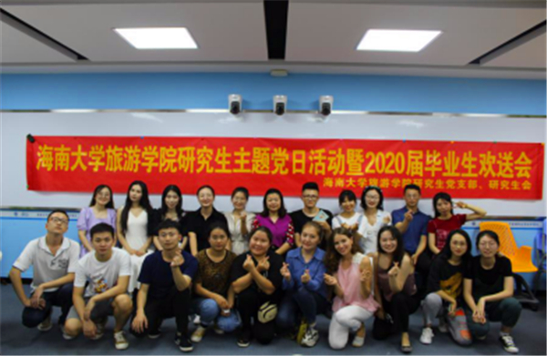 6月24晚,伟德bv1946官网旅游公司研究生党支部在8号教学楼502教室举办主题党日活动暨2020届研究生毕业欢送会。公司经理郭强、党委书记韩力光,副经理谢祥项、侯佩旭等院领导出席并致欢送辞。本次活动由研究生党支部书记邹靖老师主持。