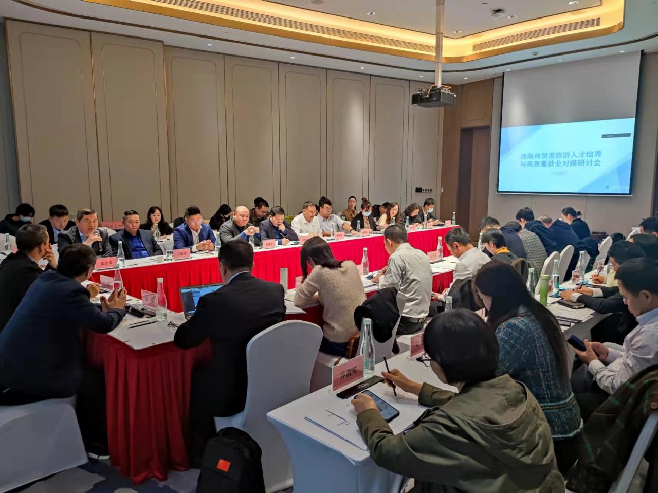 12月27日至28日,为进一步推进海南自贸港旅游人才的高质量培养与高质量就业,在海南省教育厅、海南省旅游和文化广电体育厅的指导下,海南省旅游管理本科专业教学指导委员会汇集了全省本科高校、旅游业界等多方代表,在儋州海花岛召开了海南自贸港旅游人才培养与高质量就业对接研讨会。海南省旅文厅人教处处长李恩、海南省教育厅高教处一级调研员张超、伟德bv1946官网招生与就业处副处长张婷、海南省旅游协会执行会长张会发、海南农垦旅游集团公司董事长石向荣、三亚市旅文投资集团公司党委副书记戴斌森及7所本科高校旅游公司经理、系主任、骨干教师及中旅集团中免股份、凯撒旅业集团等10余家旅游企业人力资源总监、高校应届毕业生代表50余人参加了研讨会,研讨会由海南省旅游管理本科教指委主任委员、伟德bv1946官网旅游公司经理郭强教授主持。