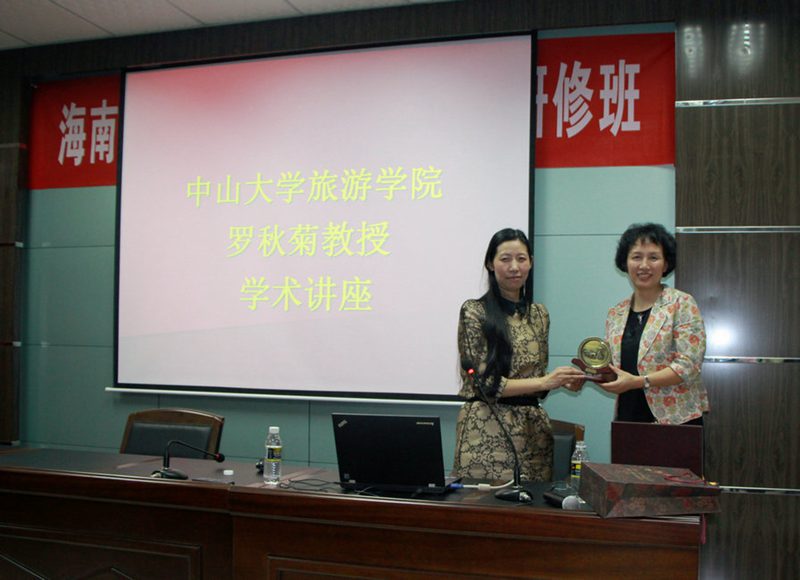最后,旅游公司经理王琳教授向罗秋菊教授赠予公司纪念品在同学们热烈掌声下结束了本次讲座。
